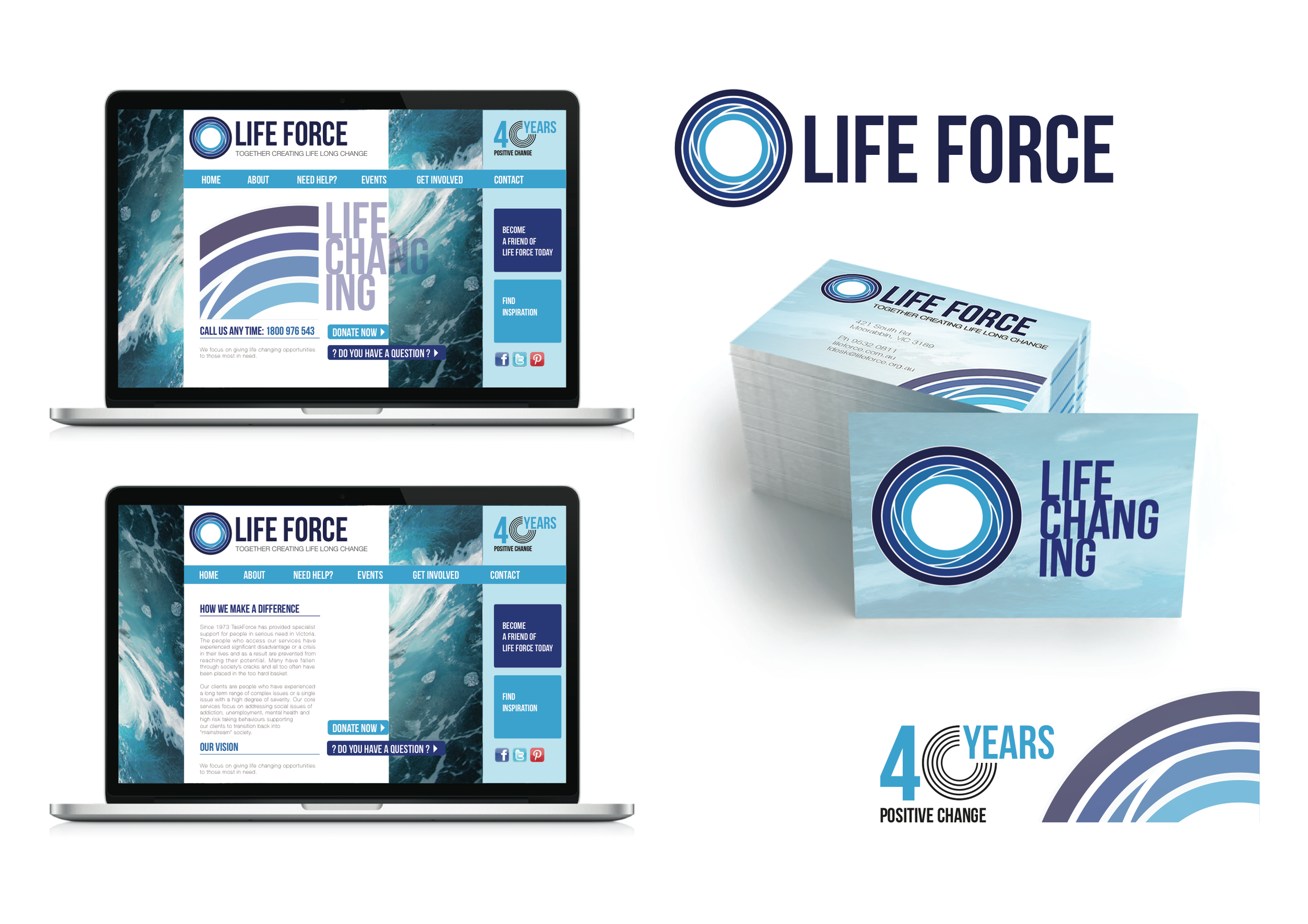 Rebranding for Task Force Community Agency, a charity organisation helping those who are disadvantage and most in need. The cleint was open to a new comapny name complete with new logo design and 40 years logo. The new company name Life Force communicates a more postive vibe whilst still maintaining the strength and action of the previous company name.